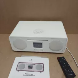 Biała lampka led z wbudowanym głośnikiem Bluetooth na baterie.